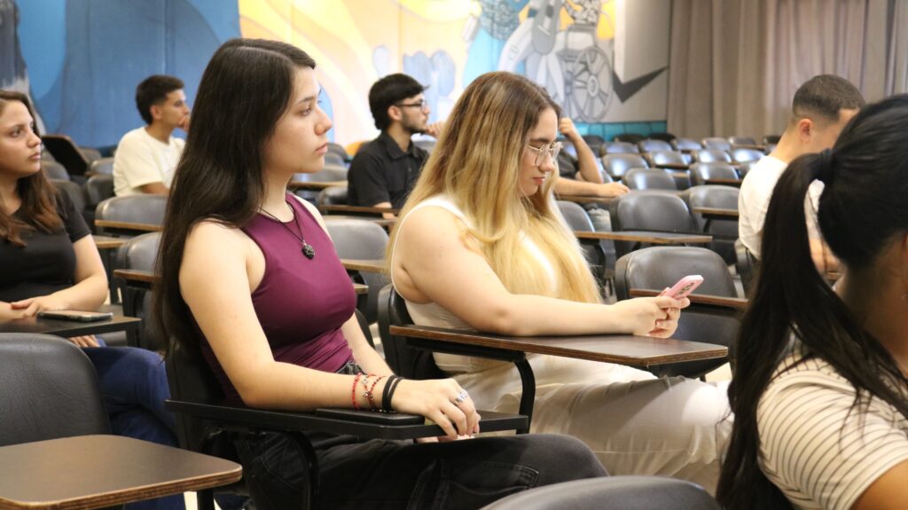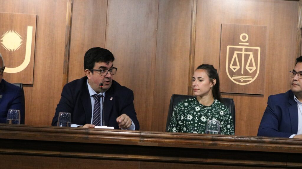 Siguió la secretaria académica, Ivana Vuckovic, quien hizo hincapié en que el derecho va más allá del estudio de normas, promoviendo el “pensamiento crítico para resolver problemas sociales”. Presentó el área de Extensión Universitaria como un espacio para trascender el aula y abordar problemas concretos del territorio, a través de seminarios y proyectos. También mencionó el funcionamiento de las Prácticas Vocacionales Orientadas, que vinculan a estudiantes con experiencias laborales reales en organismos públicos y privados. En el ámbito del área de Investigación, destacó el programa “NIDO”, que permite a estudiantes avanzados y graduados integrarse a equipos de investigación. Finalmente, abordó la movilidad internacional, ofreciendo programas de intercambio presencial y virtual con universidades de diversos países.