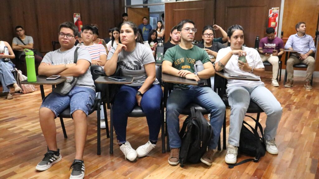 Por su parte Maximiliano Pérez, secretario de Asuntos Estudiantiles, detalló los beneficios y actividades recreativas disponibles para los estudiantes. Mencionó las instalaciones deportivas en el campus, como canchas de fútbol, básquet, handball y vóley, así como un gimnasio gratuito. Informó sobre el sistema de salud universitario, que incluye medicina general, odontología y un gabinete psicosocial. Presentó las becas disponibles, como el programa Progresar Superior y las becas de comedor y Arturo Illia, que buscan cubrir necesidades académicas y alimentarias. También destacó la existencia de un comedor universitario con menú variado y accesible. Para cerrar, puso a disposición el correo electrónico para consultas estudiantiles.dch@comunidad.unne.edu.ar.