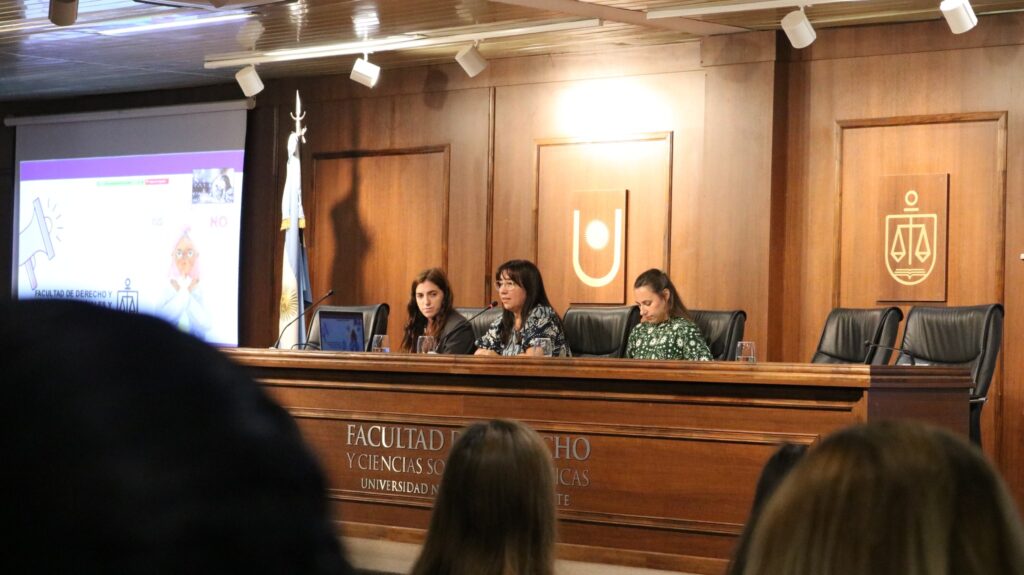Finalmente, la Lic. Leticia Gauna, coordinadora del Protocolo de Prevención de Violencia, dio la bienvenida a las y los estudiantes y resaltó la importancia de la “convivencia en paz y el respeto a la diversidad”. Presentó el Código de Conducta y el Protocolo de Actuación ante situaciones de violencia de género, discriminación por orientación sexual e identidad de género, vigente desde 2018. Explicó que este protocolo busca “prevenir y actuar ante situaciones de acoso y discriminación” dentro de la comunidad académica. Mencionó el funcionamiento de un espacio de atención y escucha y del patrocinio jurídico gratuito para mujeres y personas en situación de vulnerabilidad. Como también, hizo un llamado a “no naturalizar conductas violentas y a intervenir o buscar ayuda ante cualquier situación”.