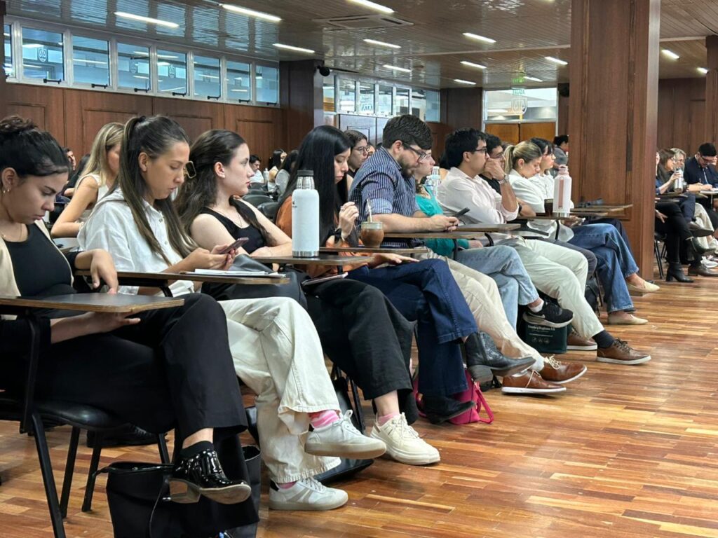 Bajo la coordinación de la Prof. Esp. Natalia Bordagorry y la moderación del Prof. Esp. Nicolás Repetto, la jornada se desarrolló con un salón colmado de asistentes, entre los que se destacaron abogados, estudiantes de los últimos años de la carrera y representantes gremiales.