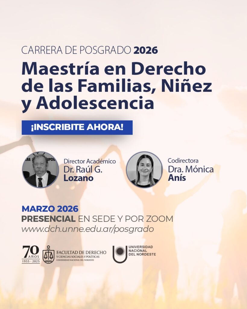 | Maestría en Derecho de Familia, Niñez y Adolescencia | Sólida formación teórica e intensa práctica en un campo jurídico en constante evolución. | INFO aquí |