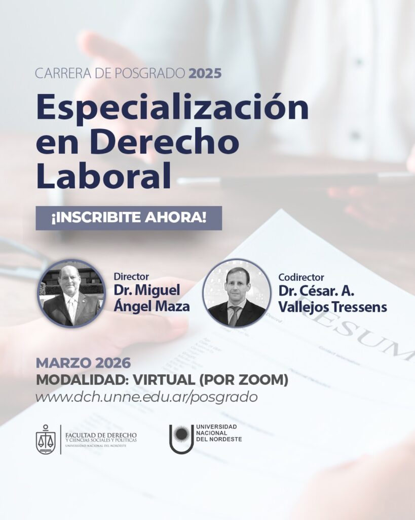 | Especialización en Derecho Laboral | Formación teórica y práctica en la disciplina, abordando la compleja y cambiante problemática social laboral, ideal para asesores, litigantes y magistrados. | INFO aquí |